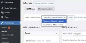 Then, navigate to the menus page (Appearance > Menus), and select the “Chapters” menu. Drag and drop your page where it needs to go.