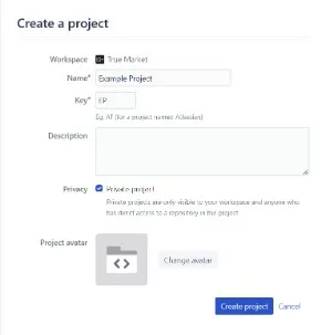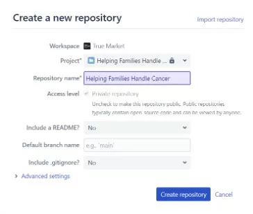 - In Bitbucket, create a project (depending on access levels you may need to get the lead developer to do this). Give it the name of the site you are working on and click Create project