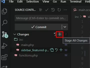 In VS Code, click Source Control in the left sidebar > Stage all changes > Write a meaningful commit message > Commit > Sync Changes